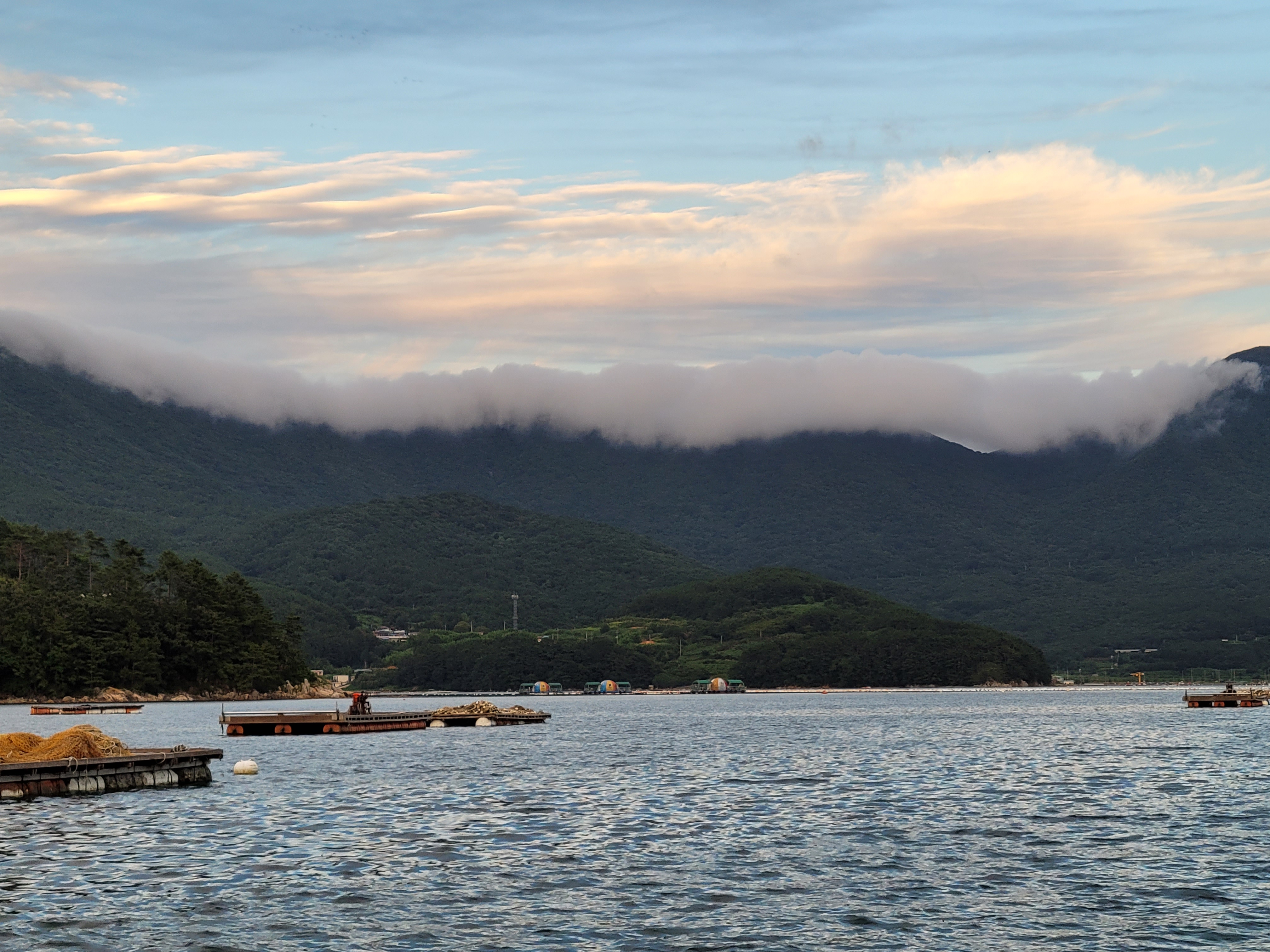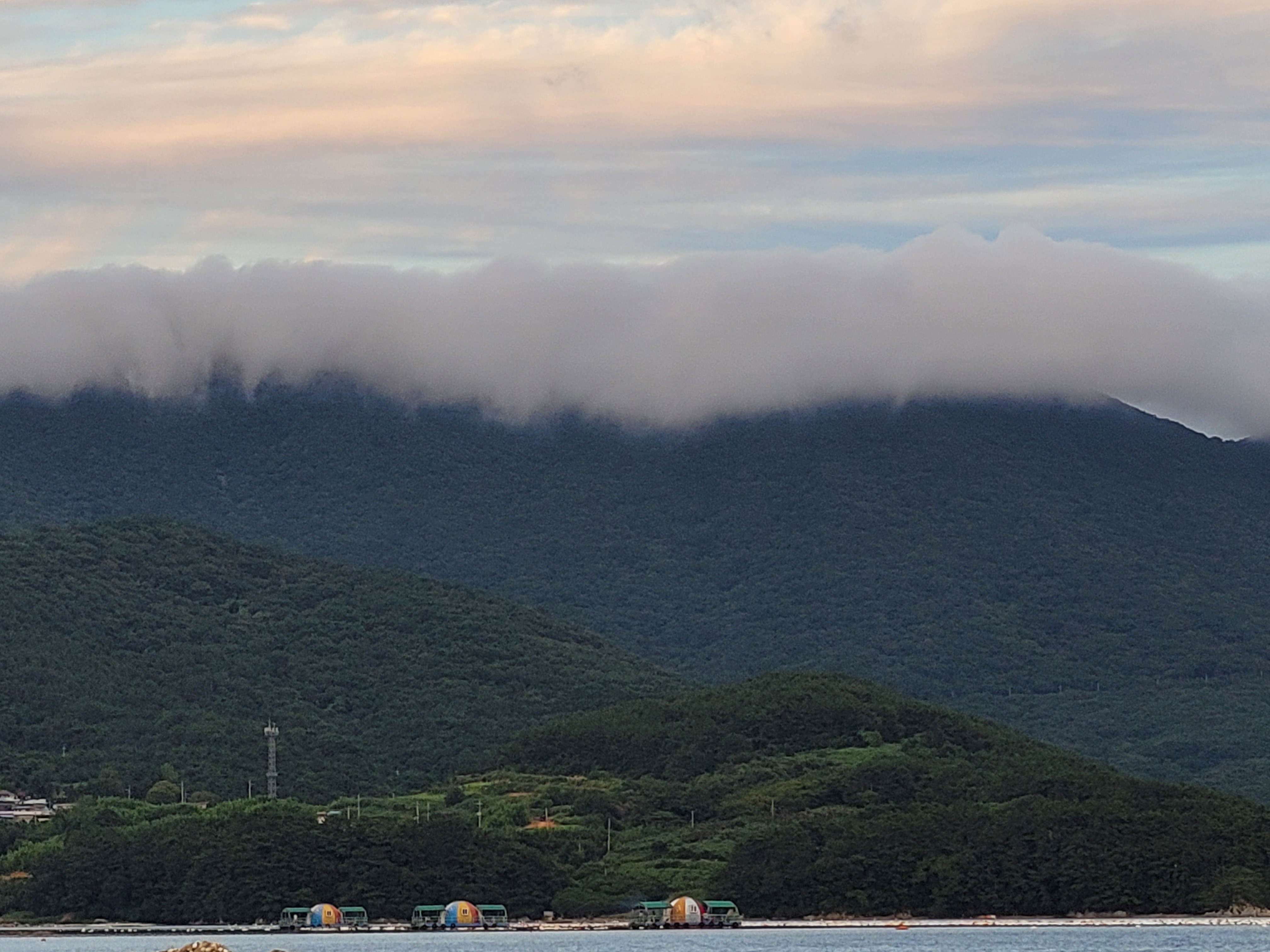 구름이 신기하게 걸쳐 있습니다.