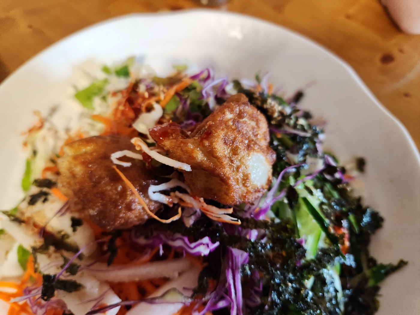 비빔만두에 있는 만두랑 군만두랑은 사이즈나 모양이 다름니다.