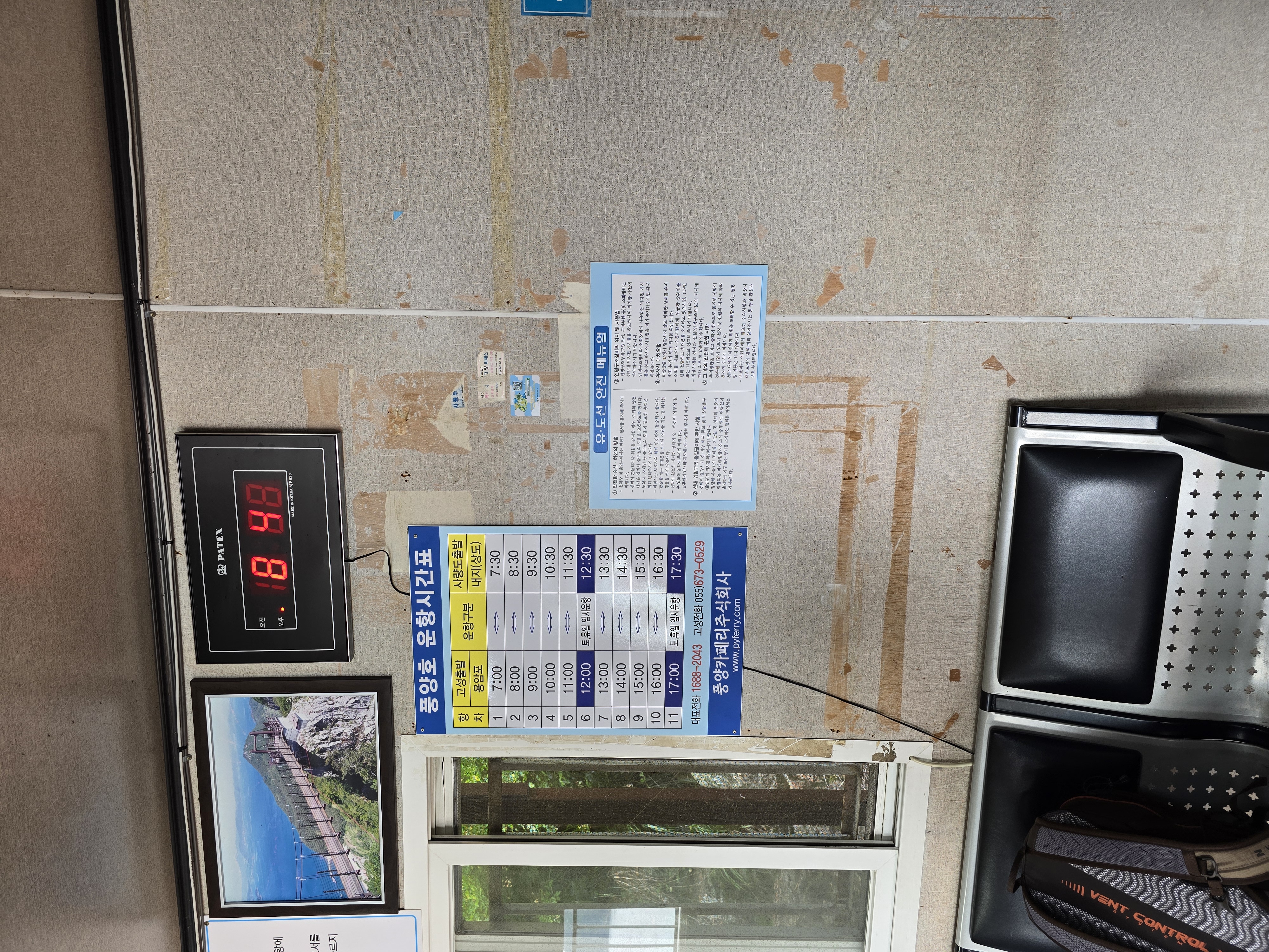 의자에 않아서 배시간을 기다립니다.