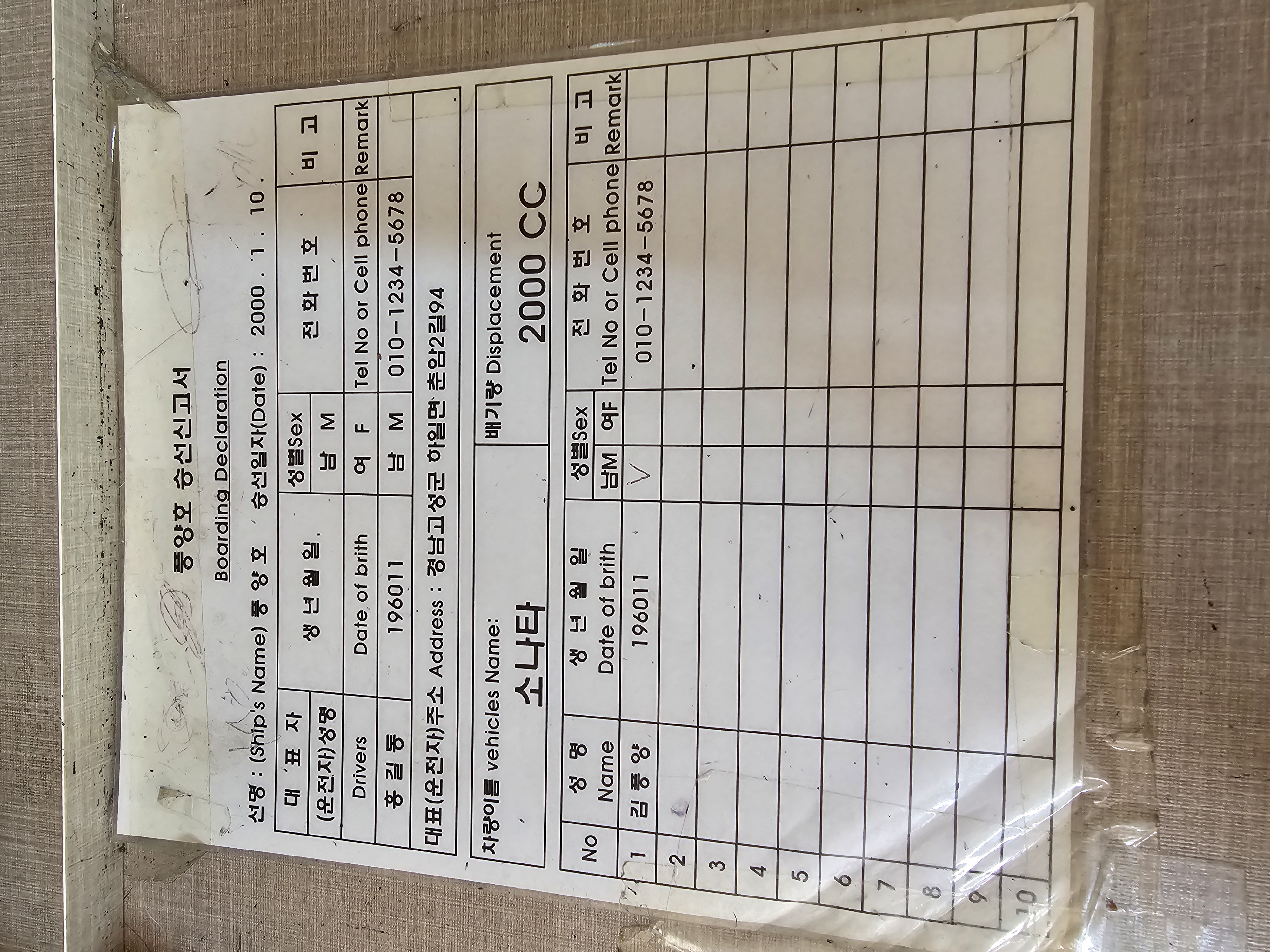 차를 가져 갈려면 아래 신고서 작성할때 차량 정보 입력하시면 됩니다.