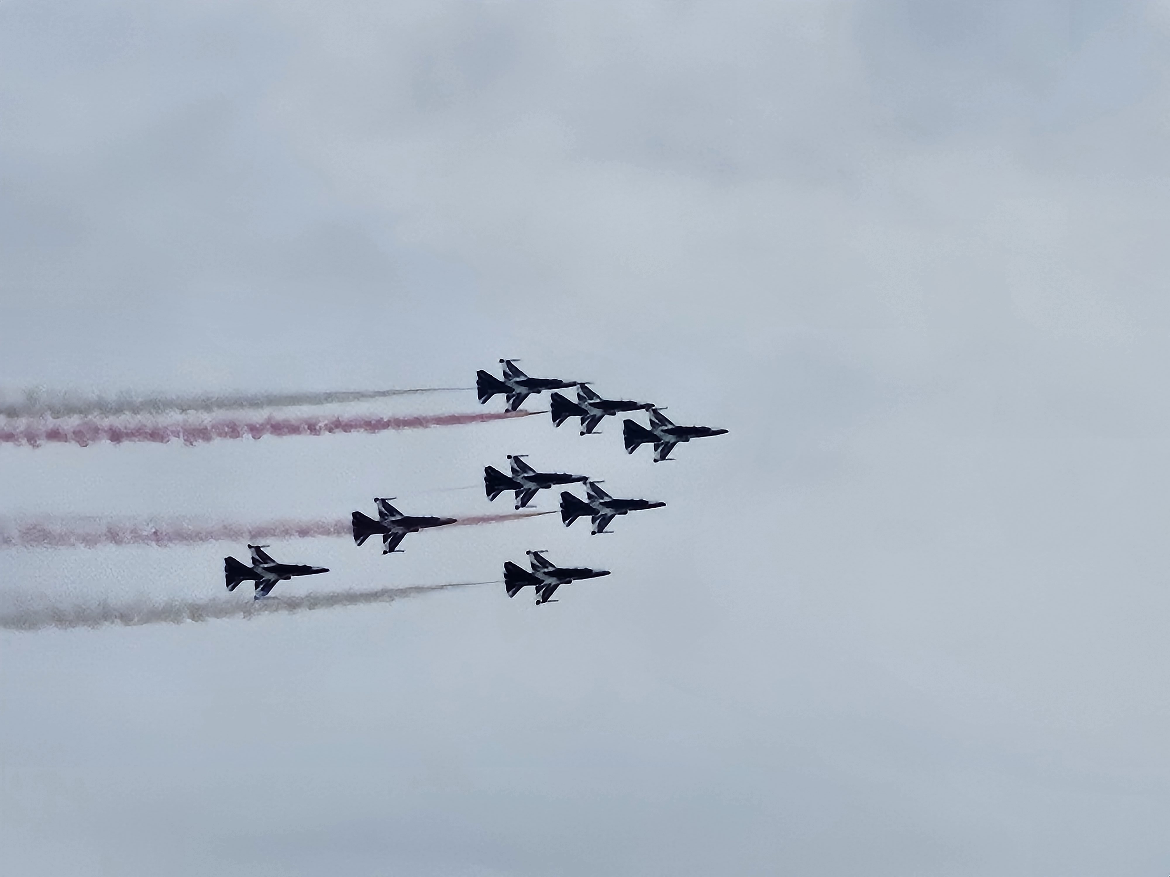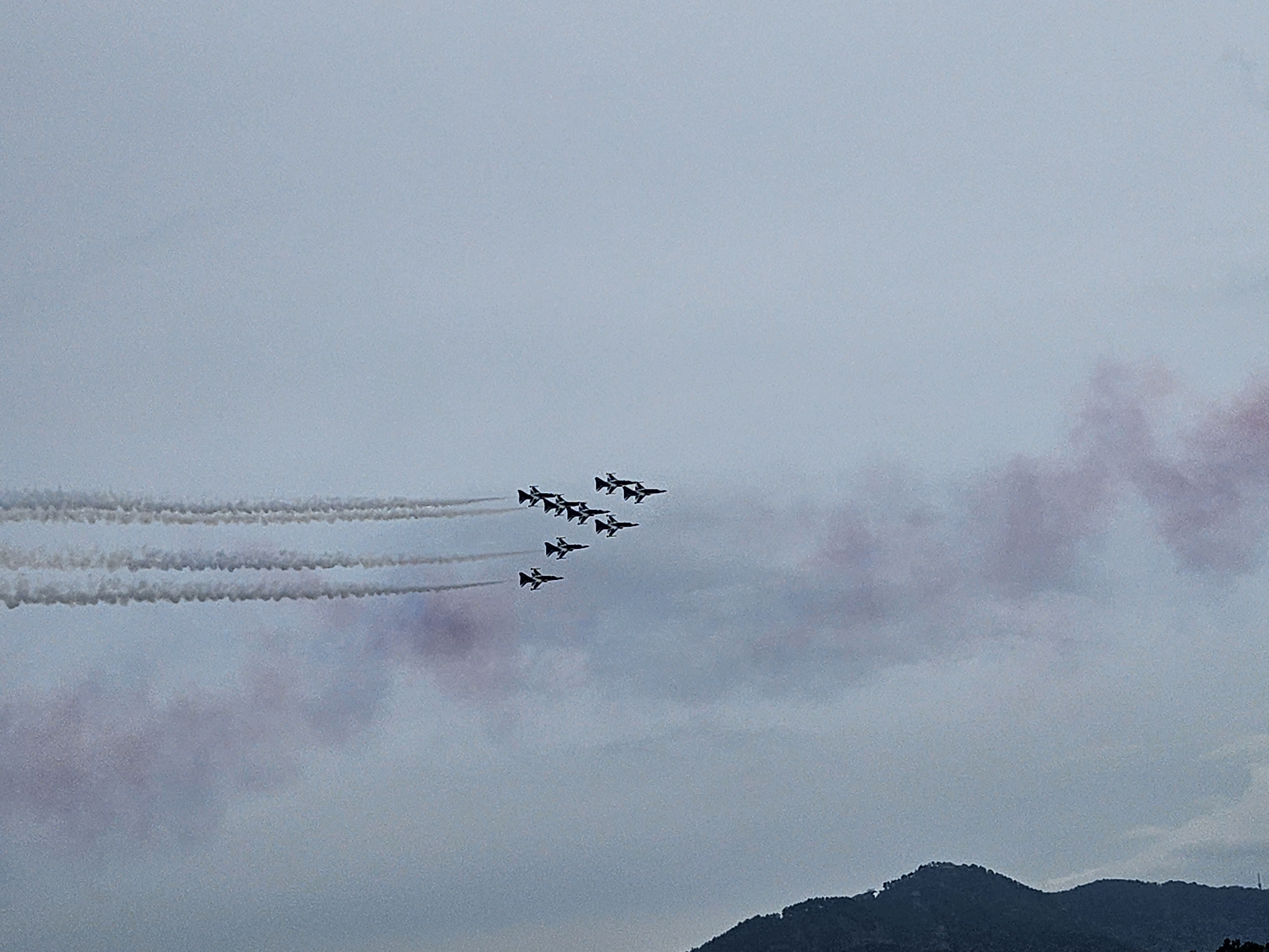 블랙이글스팀이 곡예비행을 하였습니다.