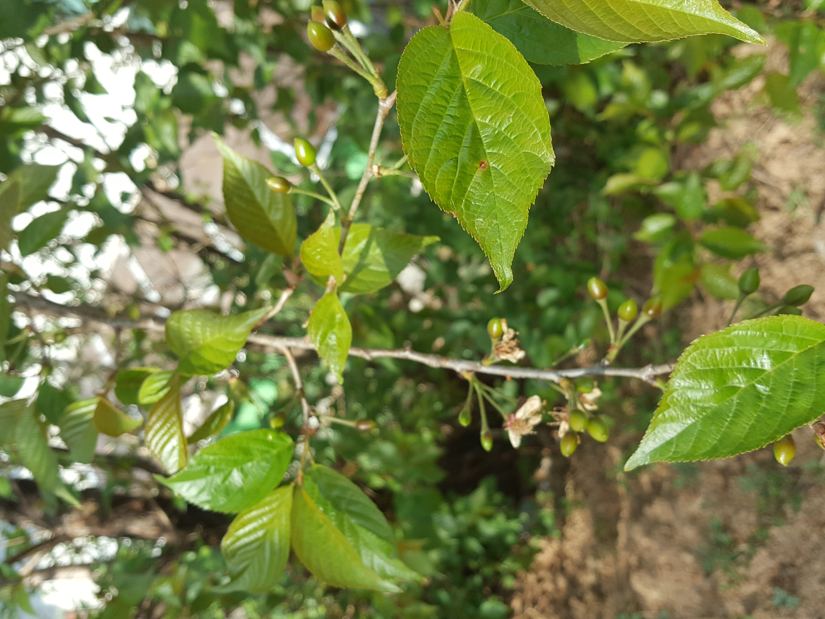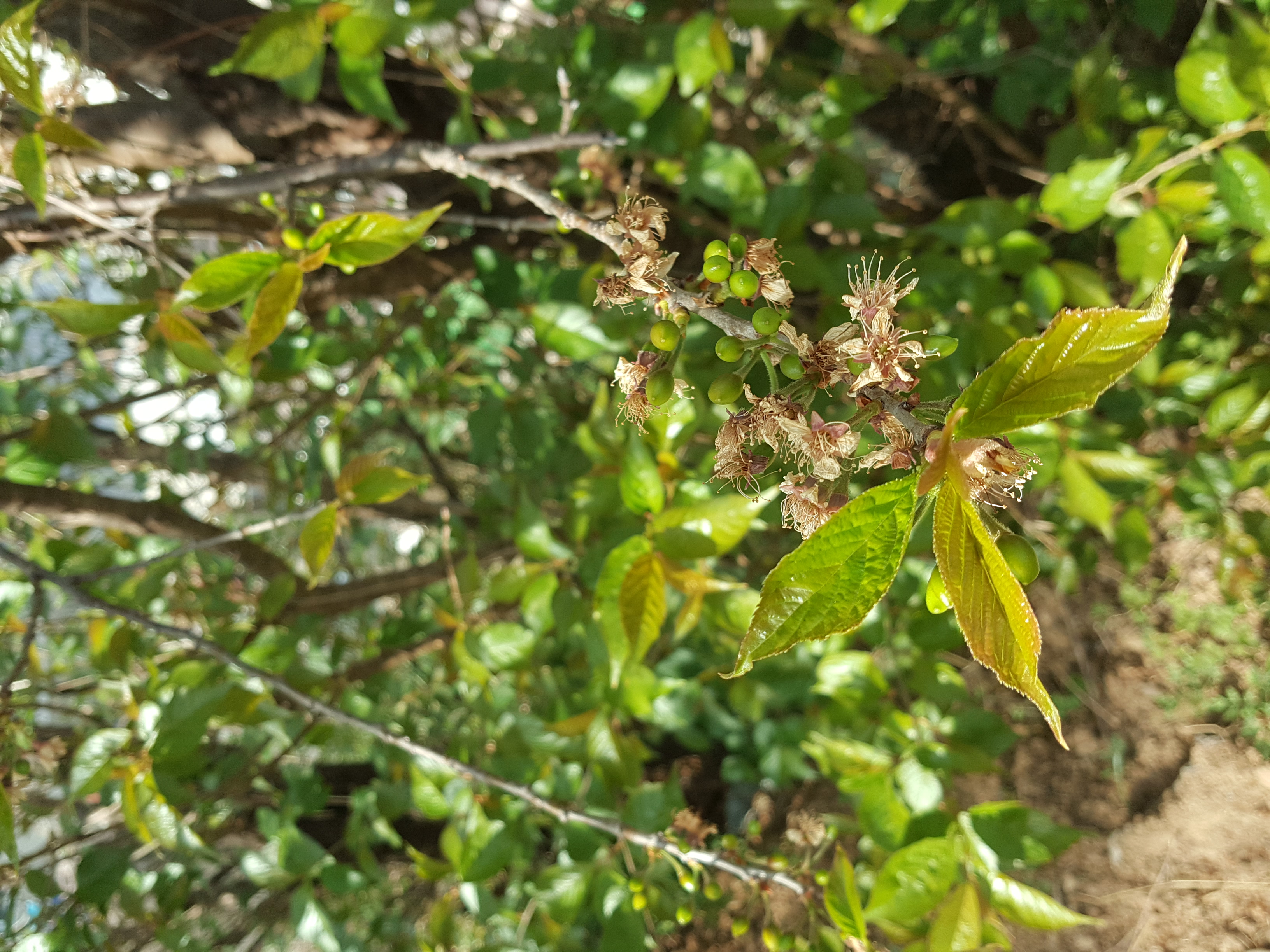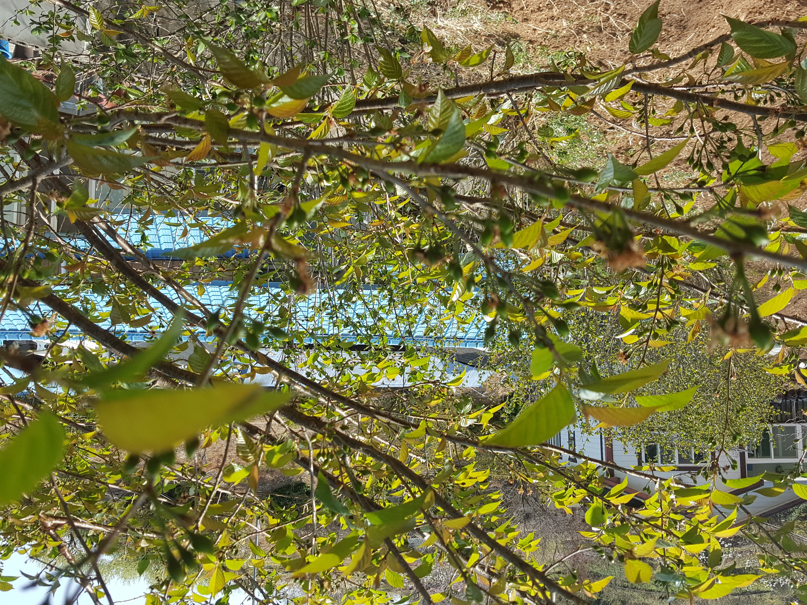 앵두 나무엔 꽃이 지고 열매가 자라고 있습니다.