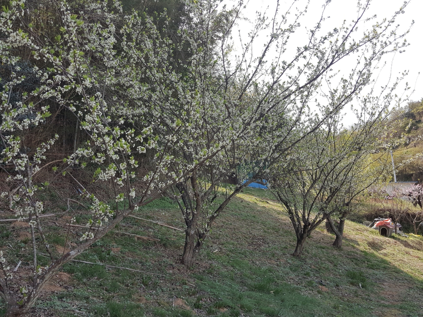자두 나무에 꽃이 많이 펴있네요