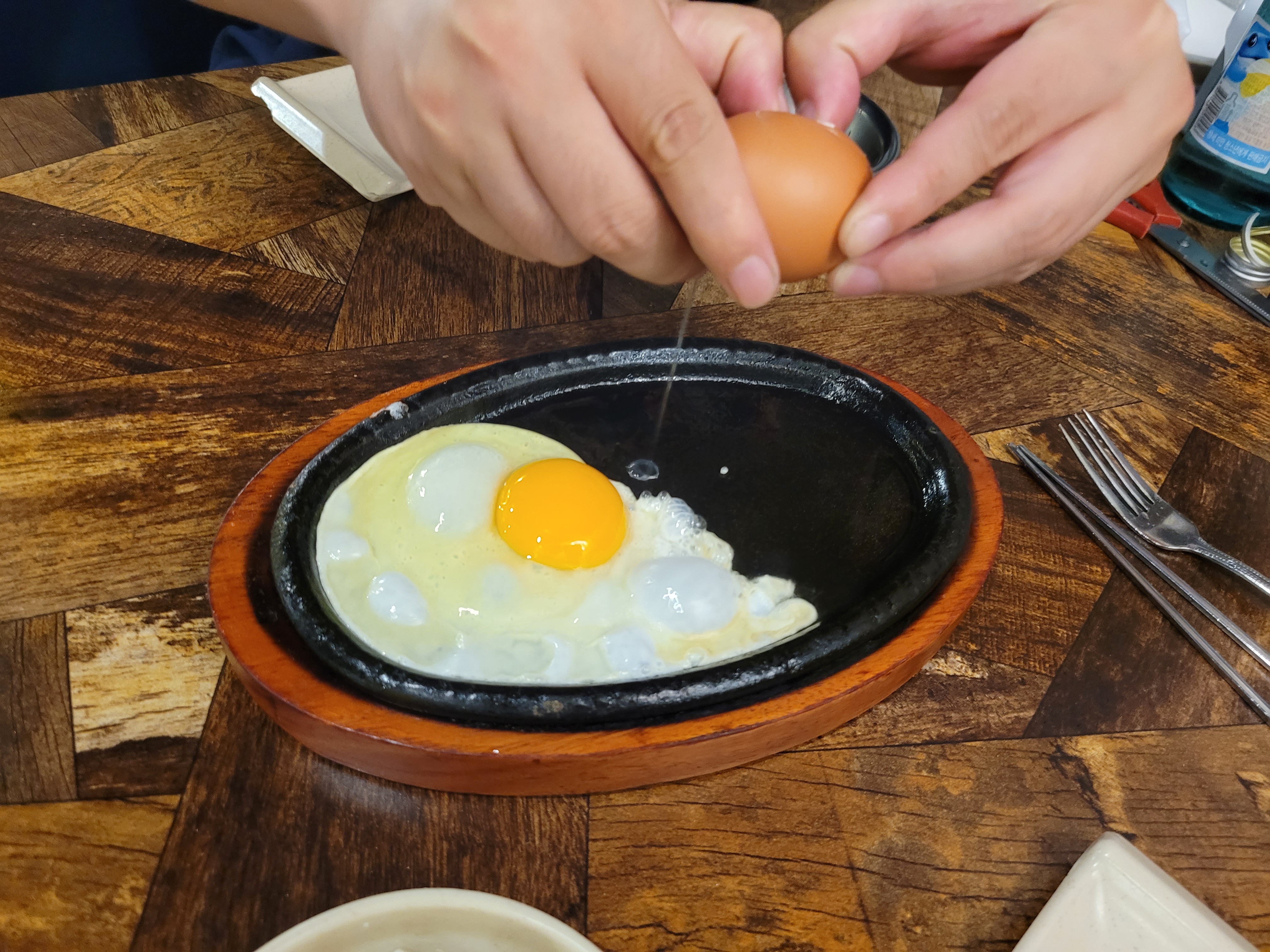 날계란을 달궈진 접시에