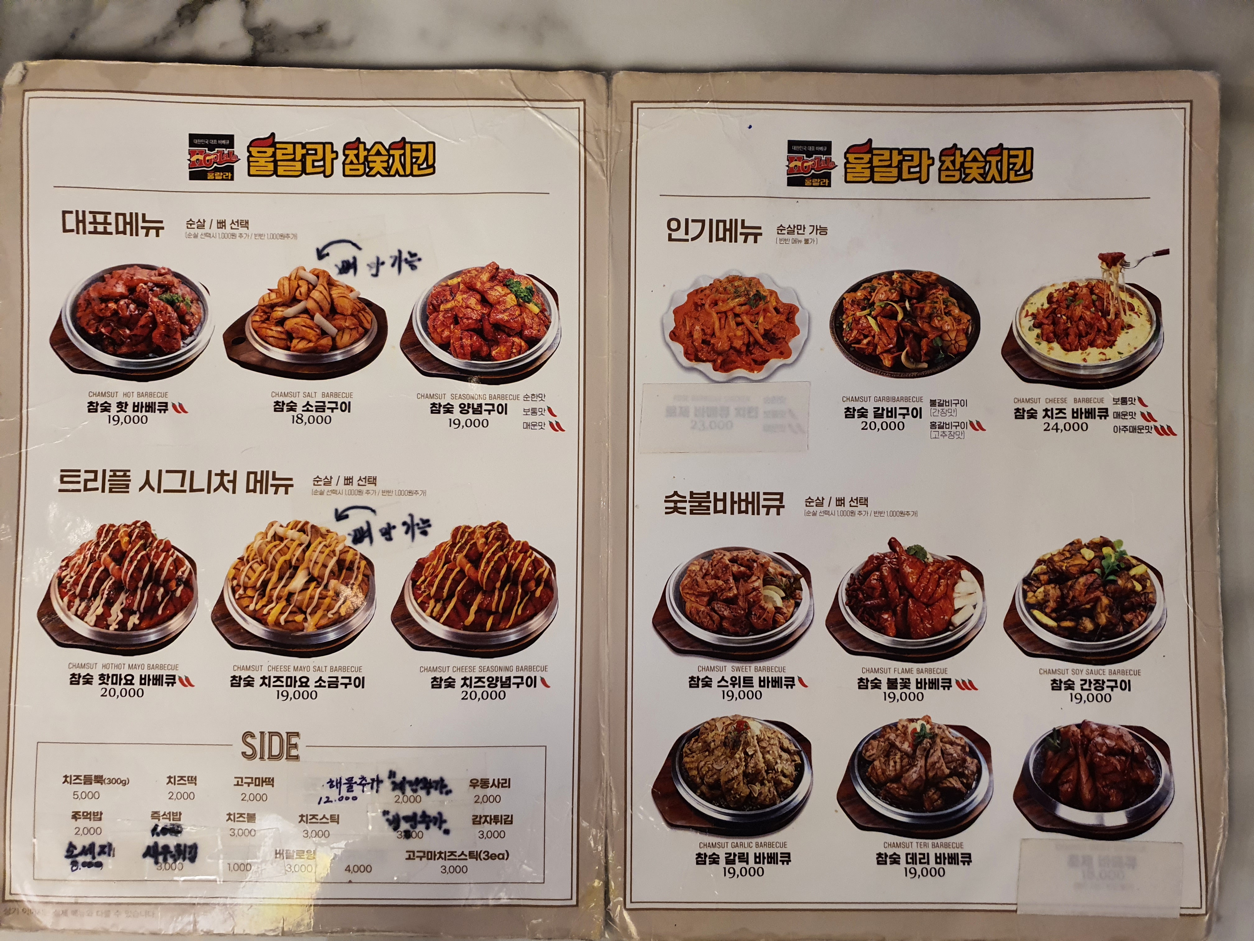 우리는 참숯 치즈 바베큐와 참숯 간장구이